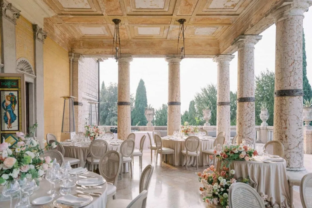 Outdoor dinners beneath the trees or overlooking the lake create a relaxed yet sophisticated setting, while candlelit receptions inside the villa evoke the charm of historic Italian residences.